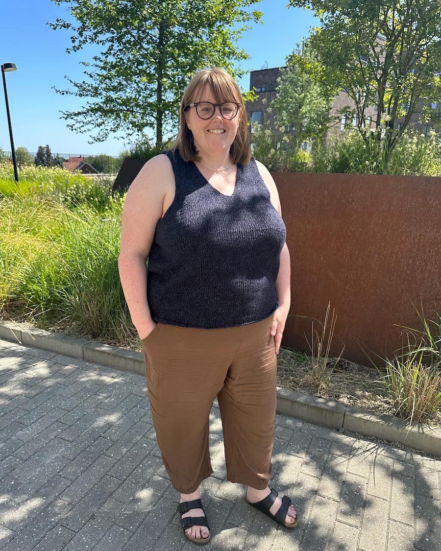 Das Alice Top ist ein schlichtes, modernes Sommertop mit klarem Schnitt und V-Ausschnitt, das von unten nach oben gestrickt wird. Der Fokus liegt auf einer ruhigen Fläche, präziser Passform und der Möglichkeit, die Länge flexibel anzupassen.