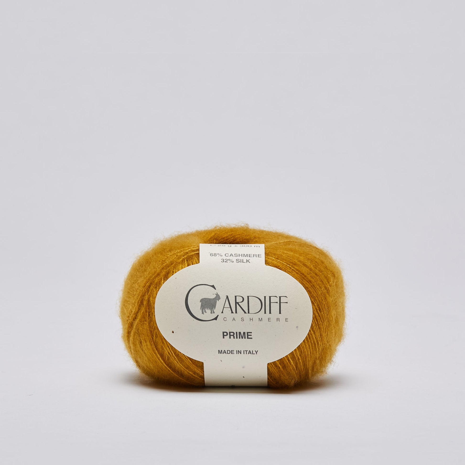 Cardiff Prime ist ein luxuriöses Lacegarn, das feinste Materialien in einer besonders edlen Struktur vereint: 68 % weiches Cashmere umhüllen einen glänzenden Kern aus 32 % Maulbeerseide. Das Ergebnis ist ein gebürstetes, luftiges Garn mit feinem Halo und seidigem Schimmer – perfekt für elegante Strickstücke oder als hochwertiger Beilauffaden.