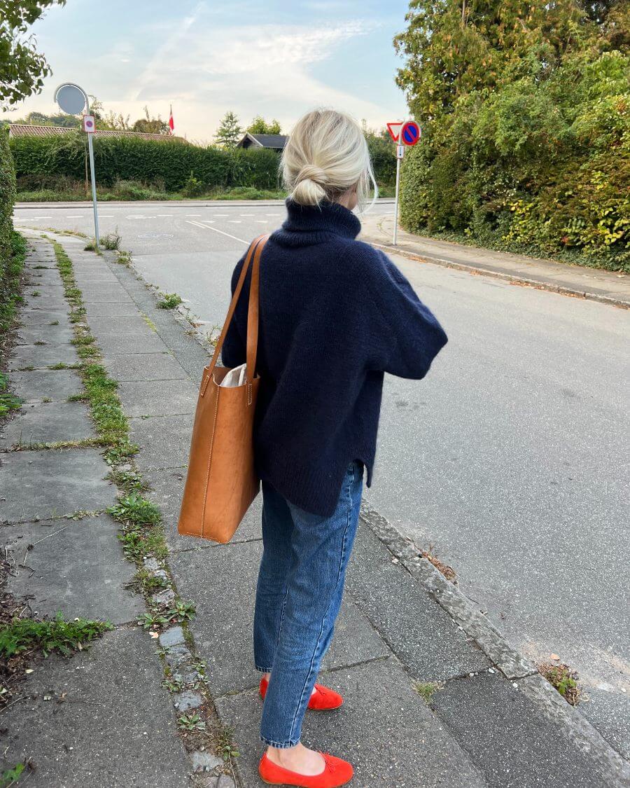 Die Ärmel entstehen aus aufgenommenen Maschen rund um die Armausschnitte und werden in Runden mit der Magic Loop Methode oder mit Nadelspiel gearbeitet. Der große Rollkragen wird zuletzt aus aufgenommenen Maschen im Rippenmuster gestrickt.