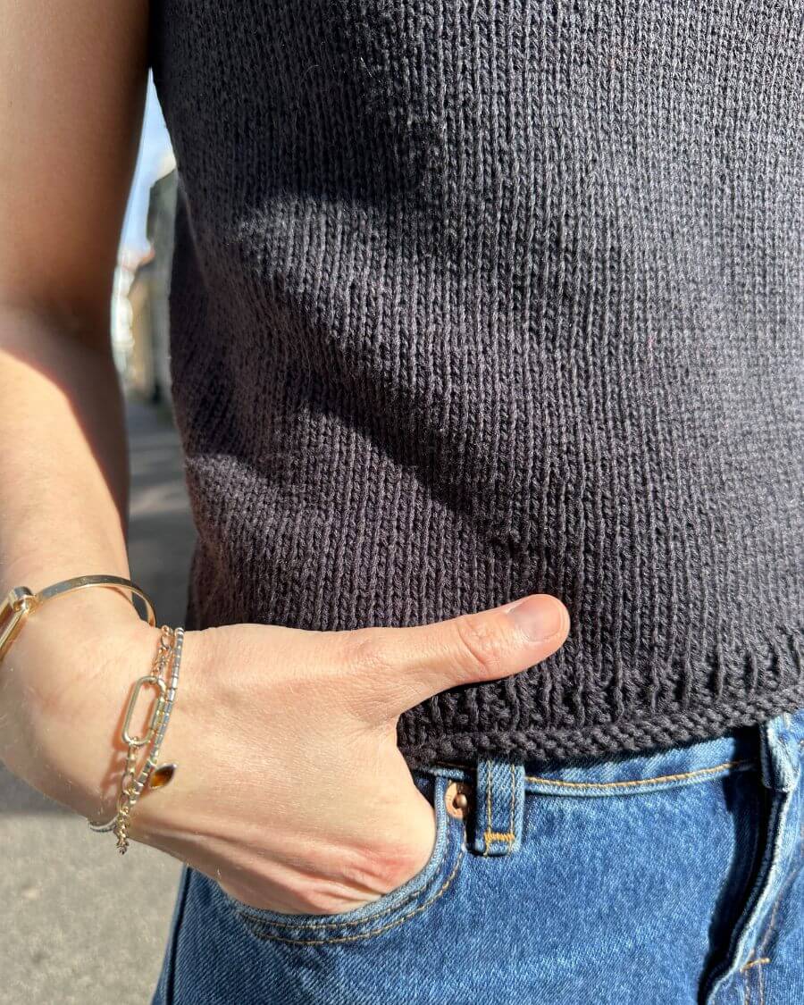 Das Cloud Top ist ein leichtes, puristisches Sommertop mit klarer Linienführung und feiner Passform. Die Konstruktion von oben nach unten mit verkürzten Reihen sorgt für einen sehr guten Sitz im Schulterbereich, während der schlichte glatt-rechts-Look das Top vielseitig kombinierbar macht.