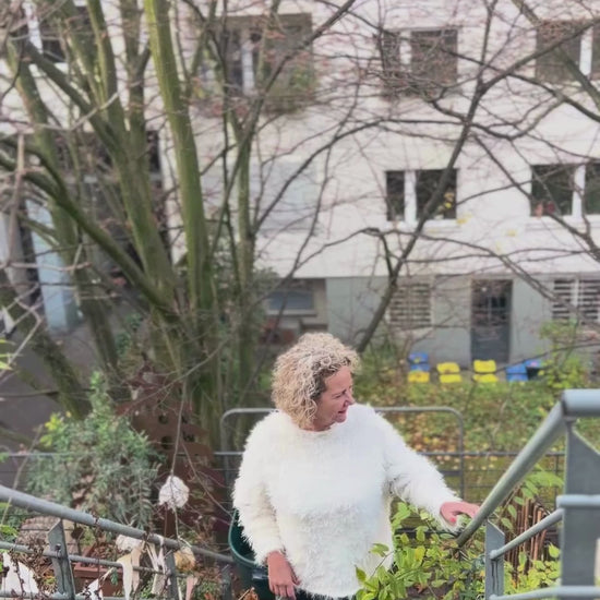 Das Ergebnis ist ein moderner, schlichter Sweater mit rundem Halsausschnitt, klaren Linien und ca. 12 cm Bewegungsspielraum. Ein Projekt für geübte Strickerinnen, die eine saubere Konstruktion und ein gleichmäßiges Maschenbild schätzen.