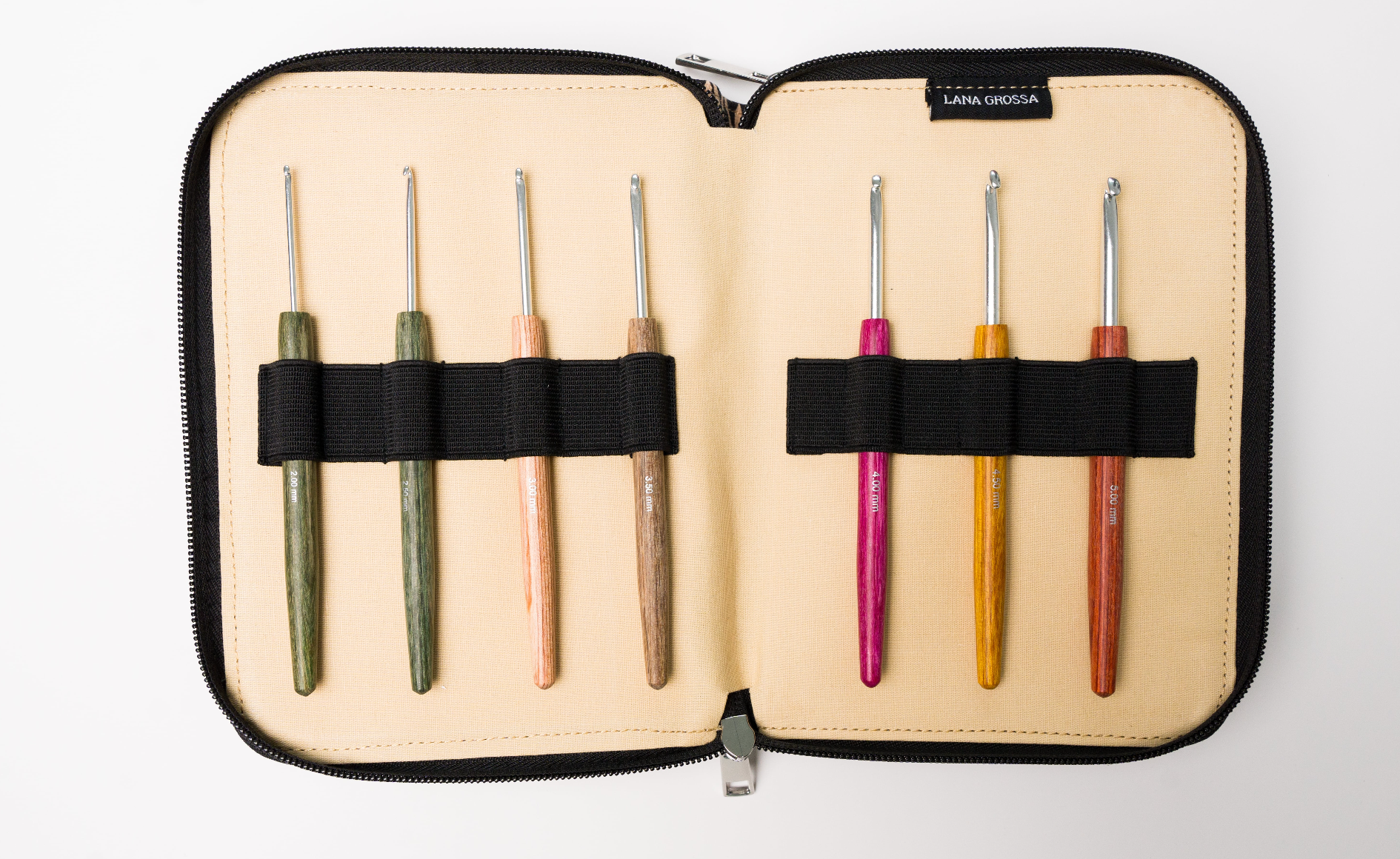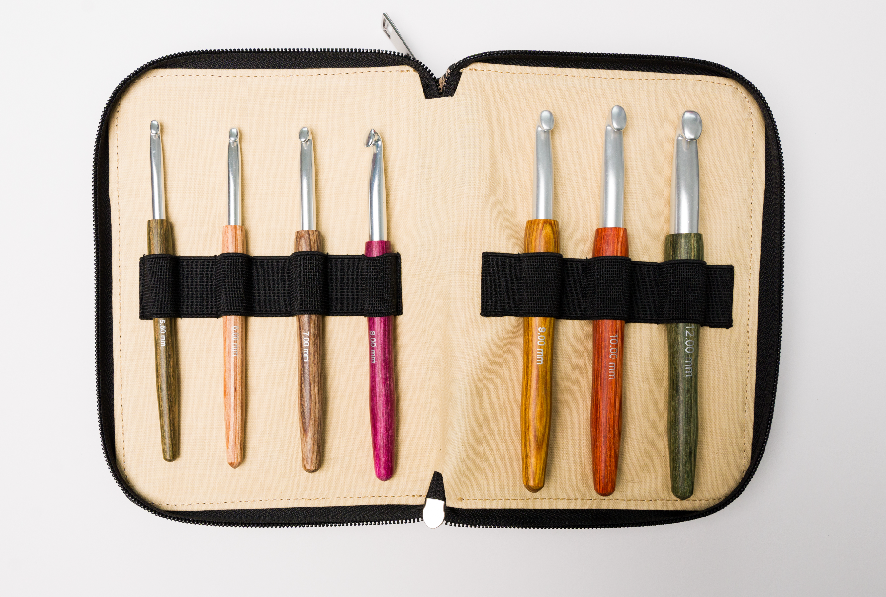 Häkelnadelset im Stoffetui mit allen Stärken 2mm bis 12mm