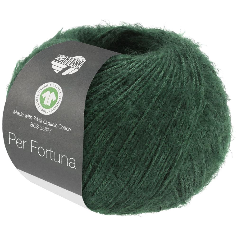 Per Fortuna GOTS ist ein luftiges, sommerleichtes Flauschgarn aus GOTS-zertifizierter Bio-Baumwolle, das sich durch ein besonders angenehmes Tragegefühl auszeichnet. Die weiche, leicht flauschige Struktur verleiht Strickstücken Volumen, ohne zu beschweren – ideal für warme Tage und Übergangsjahreszeiten.