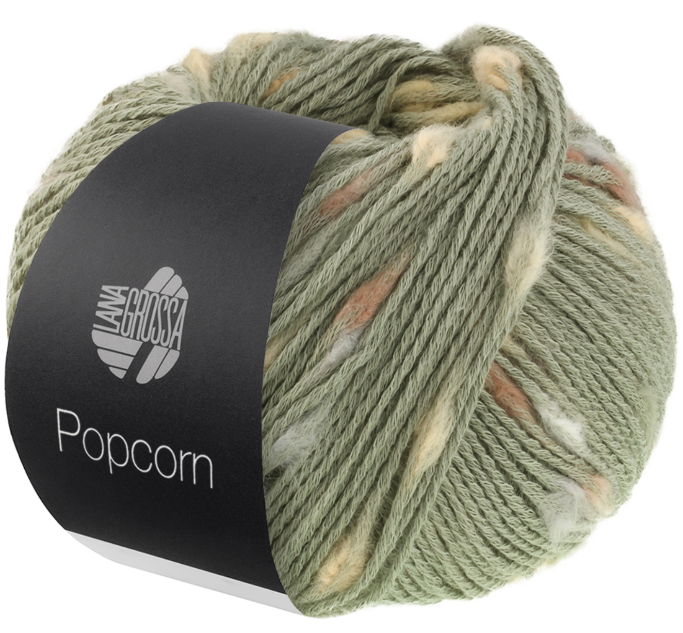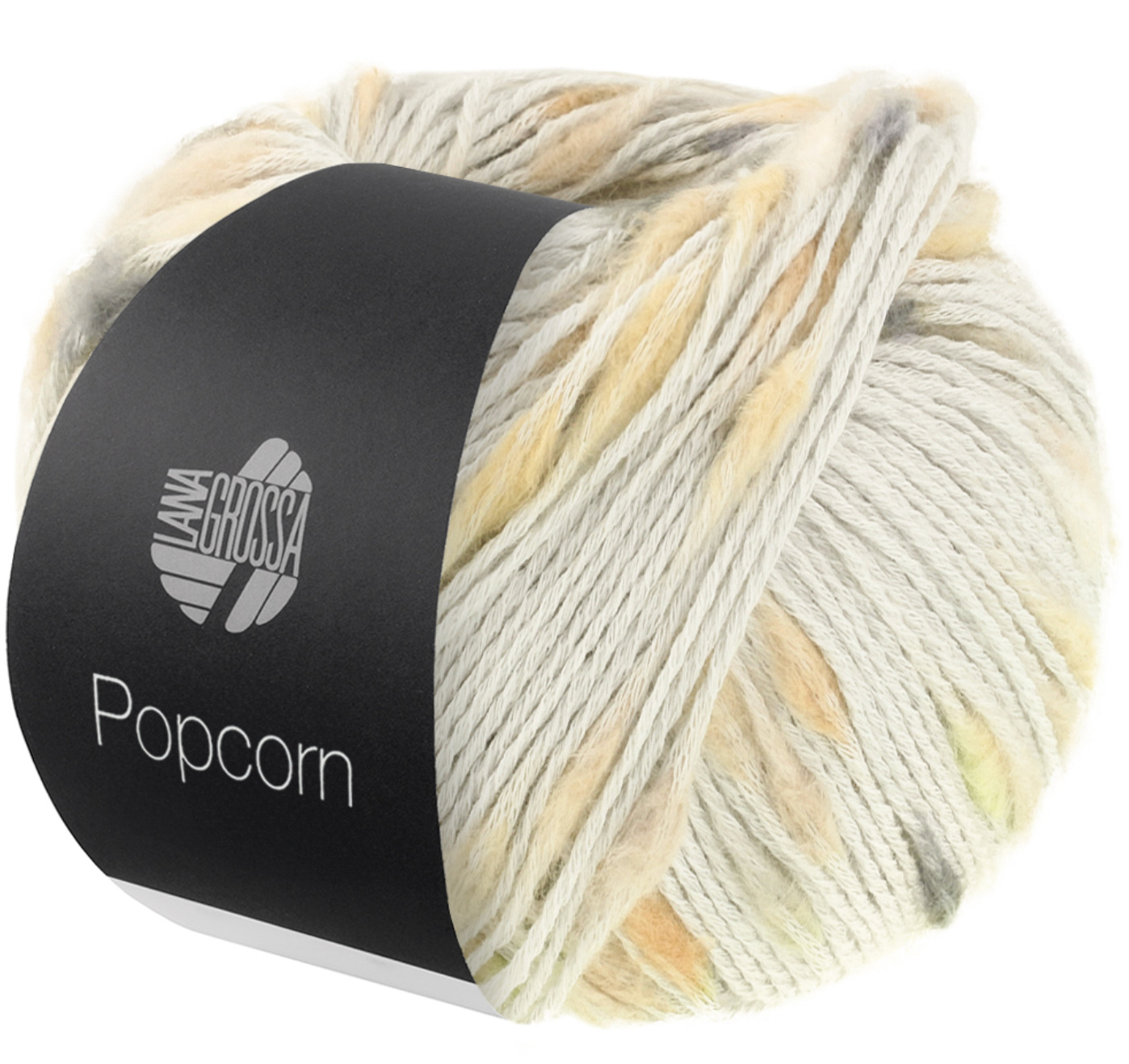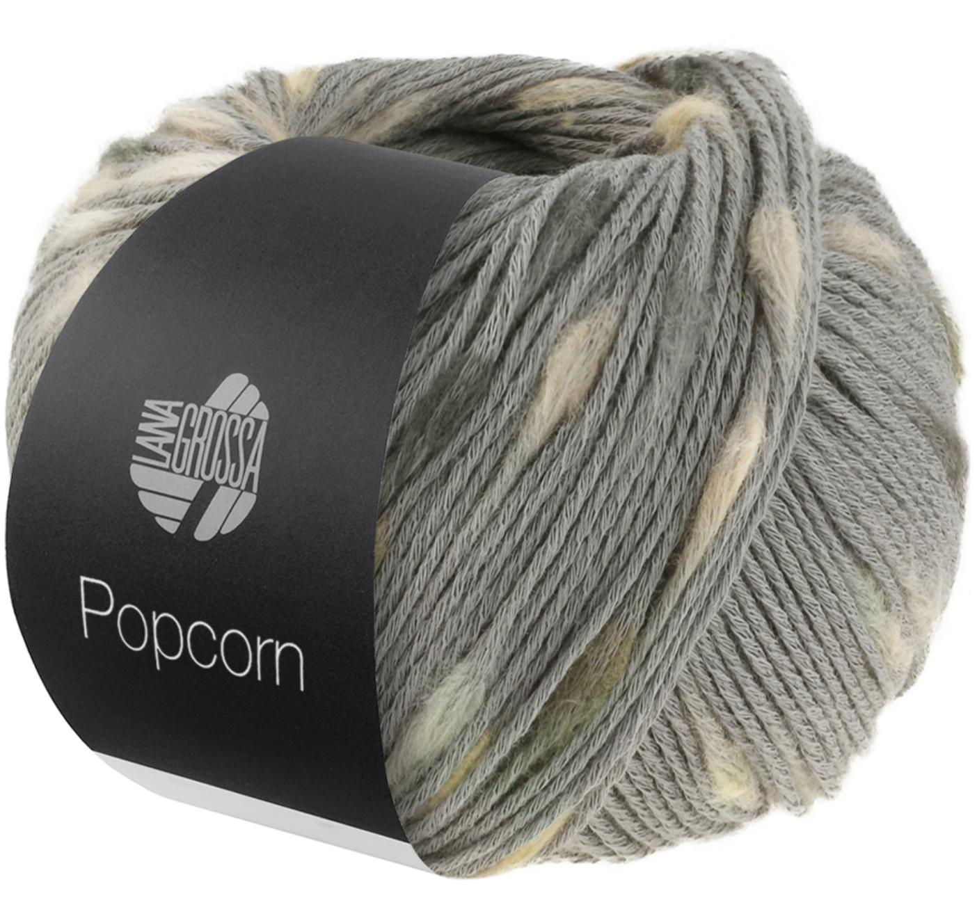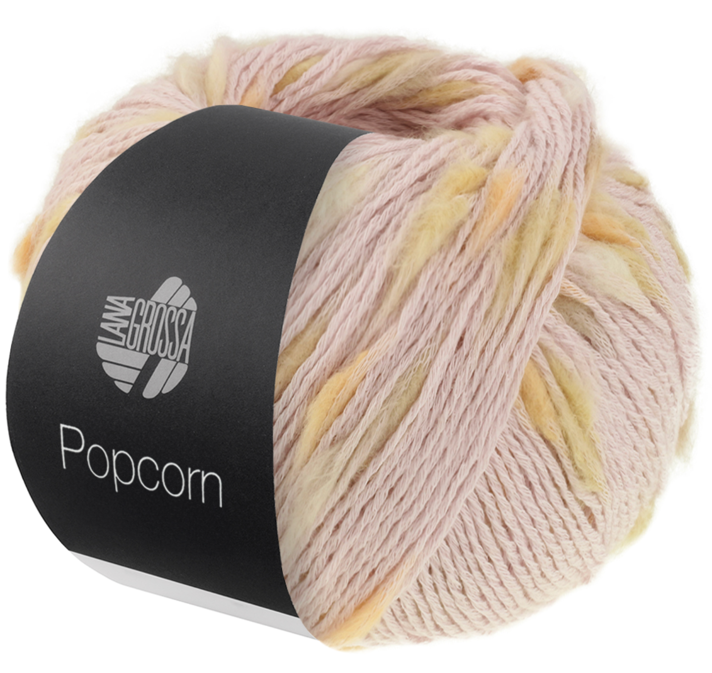 Popcorn ist ein modernes Baumwollgarn aus 100 % reiner Baumwolle, das durch seine besondere Garnstruktur eine lebendige, leicht körnige Oberfläche erhält. Die charakteristische „Popcorn“-Optik sorgt für interessante Texturen und verleiht schlichten Strickstücken das gewisse Etwas – ganz ohne komplizierte Muster.