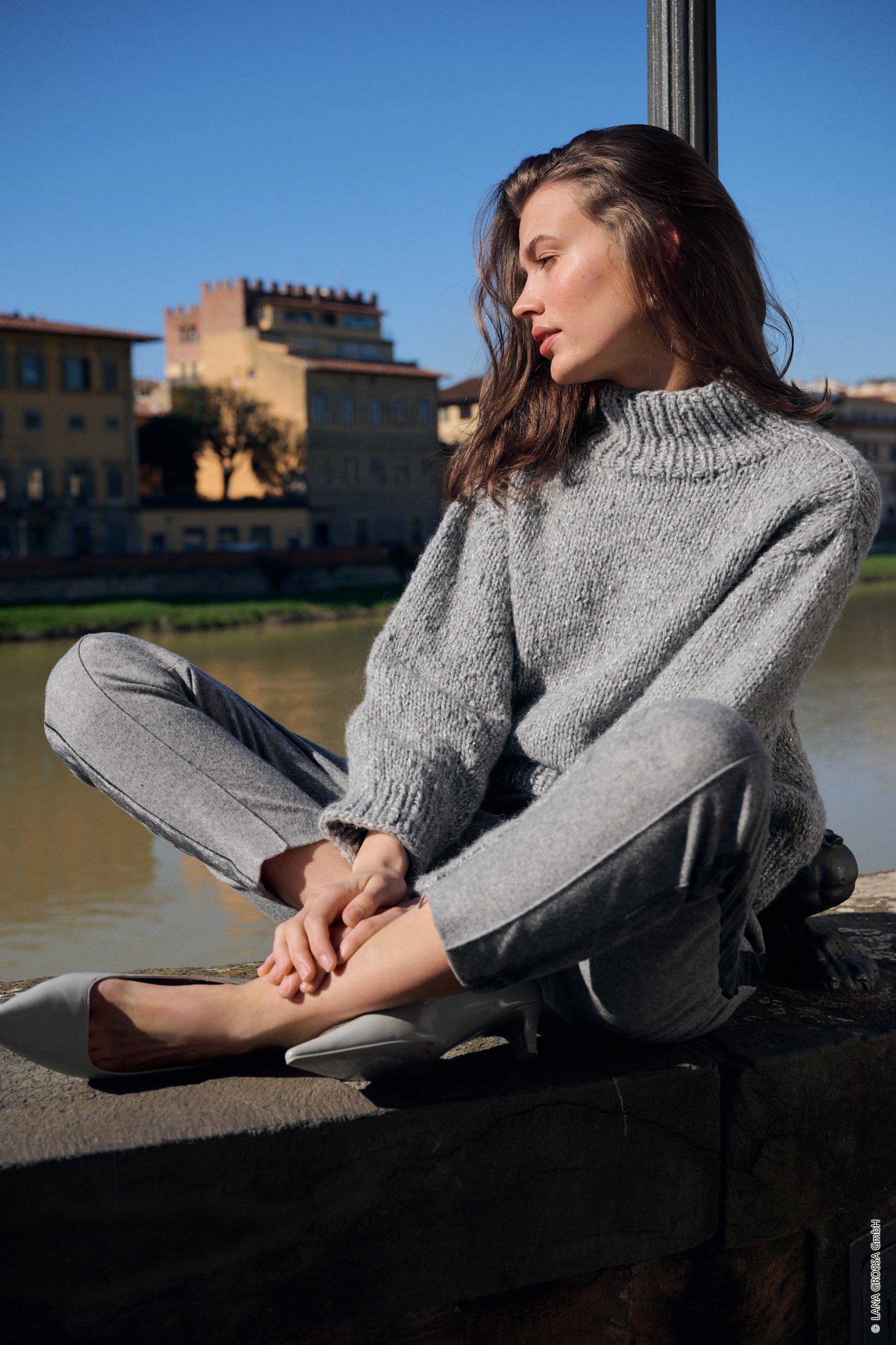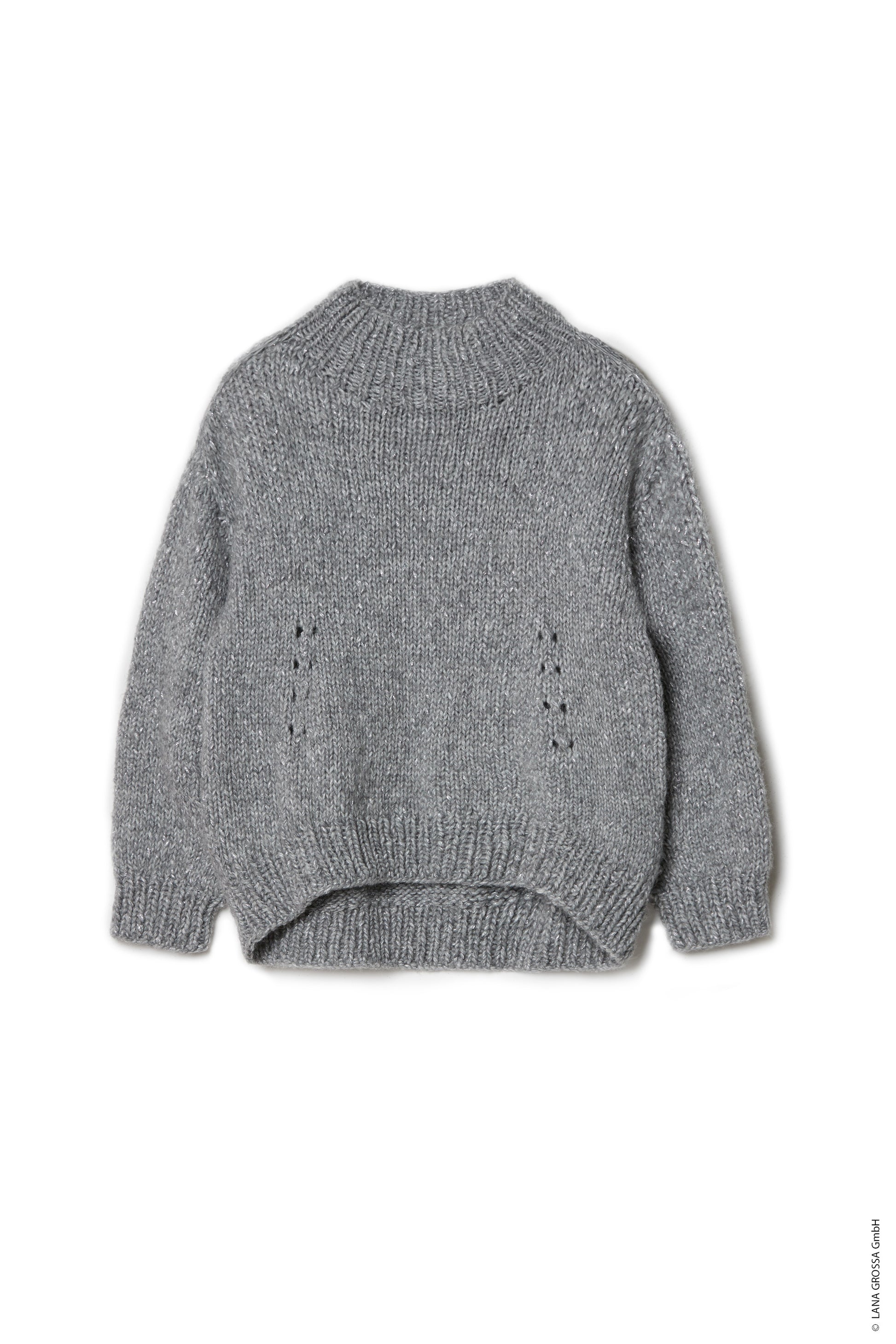 Der Pullover Lucciola begeistert durch seine Kombination aus edlem Design und luxuriösen Materialien. Gestrickt aus der Qualität Lana Grossa Lucciola, die Merinowolle, Baby-Alpaka, Viskose und Polyamid mit einem Hauch metallischer Fasern vereint, erhält der Pullover eine weiche Struktur mit elegantem Schimmereffekt.
