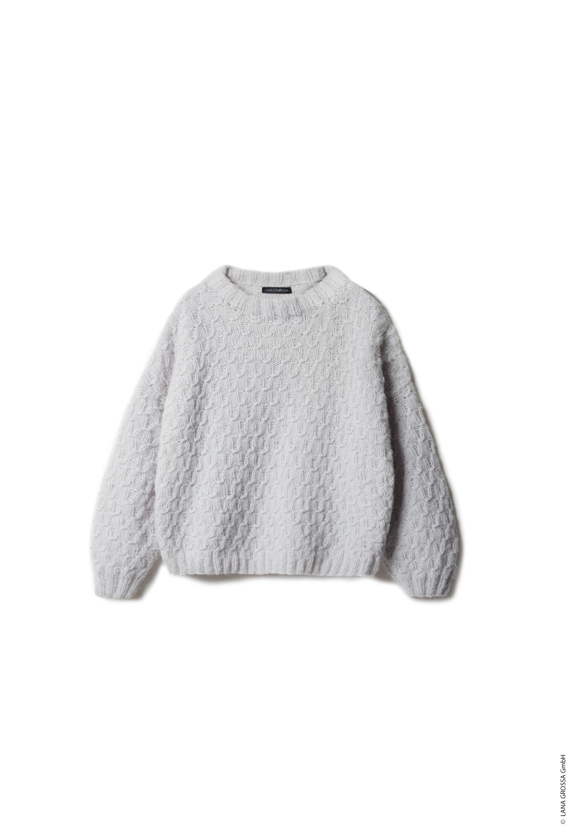 Der Pullover Nebbia überzeugt mit seiner klaren Struktur und dem luxuriösen Materialmix. Gestrickt aus Lana Grossa Nebbia, einer Kombination aus extrafeiner Merinowolle und Baby-Alpaka, entsteht ein besonders weiches, leichtes und wärmendes Strickstück.