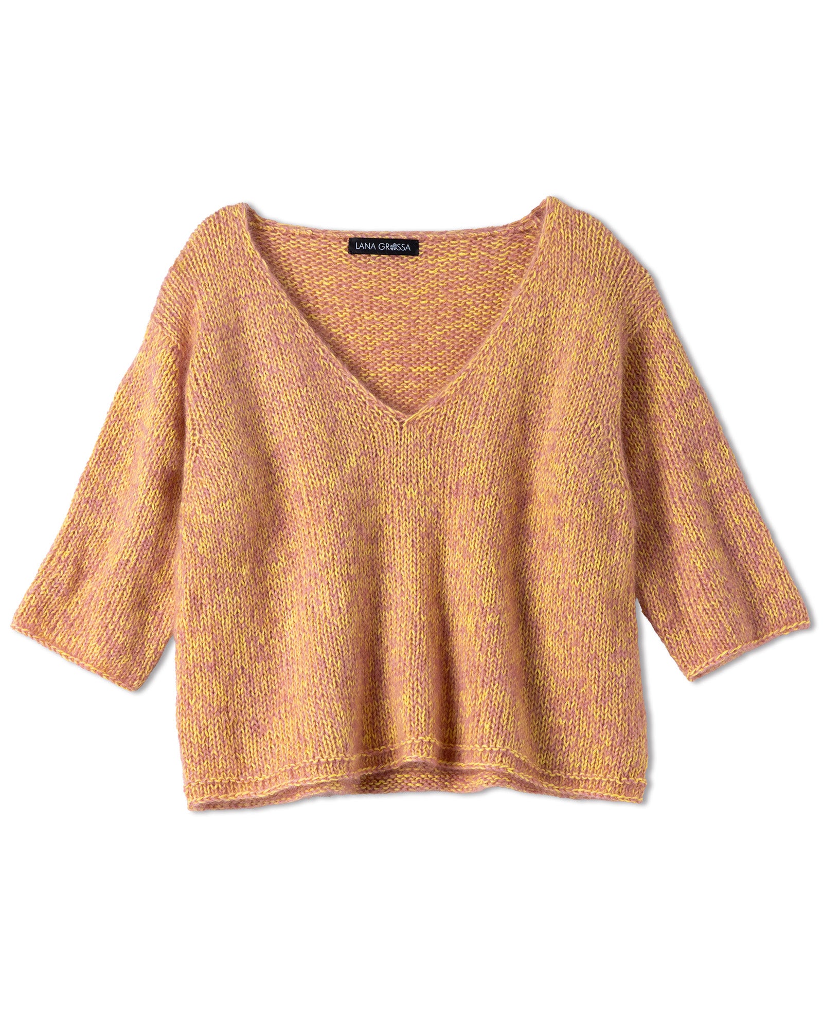 Der „V-Pullover Summer Cashmere & Silkhair“ vereint die Vorzüge beider Garne: Die Baumwolle-Kaschmir-Mischung sorgt für ein angenehm weiches Tragegefühl, während das Mohair-Seiden-Garn eine leichte, flauschige Struktur und einen dezenten Glanz bietet. Der dreifache Faden verleiht dem Pullover ein einzigartiges Volumen und macht ihn zum idealen Begleiter für verschiedene Gelegenheiten – von entspannten Freizeit-Looks bis hin zu eleganten Outfits.