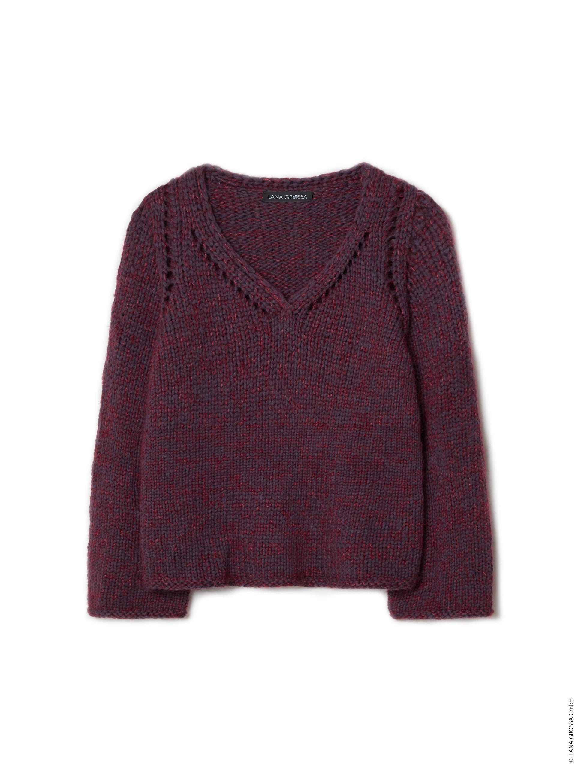 Farbspiel in Aubergine & Bordeaux sorgt für einen eleganten Look Luxuriöses Strickprojekt für modebewusste Stricker*innen
